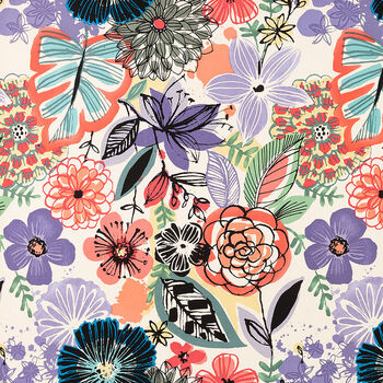Alexander Henry Fabric Painted Dahlia De Leon Design Group 8931 Color C Cream.