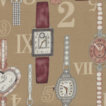 Watches from Cosmo Textiles on honey background with wrist watches approx. 4" long.